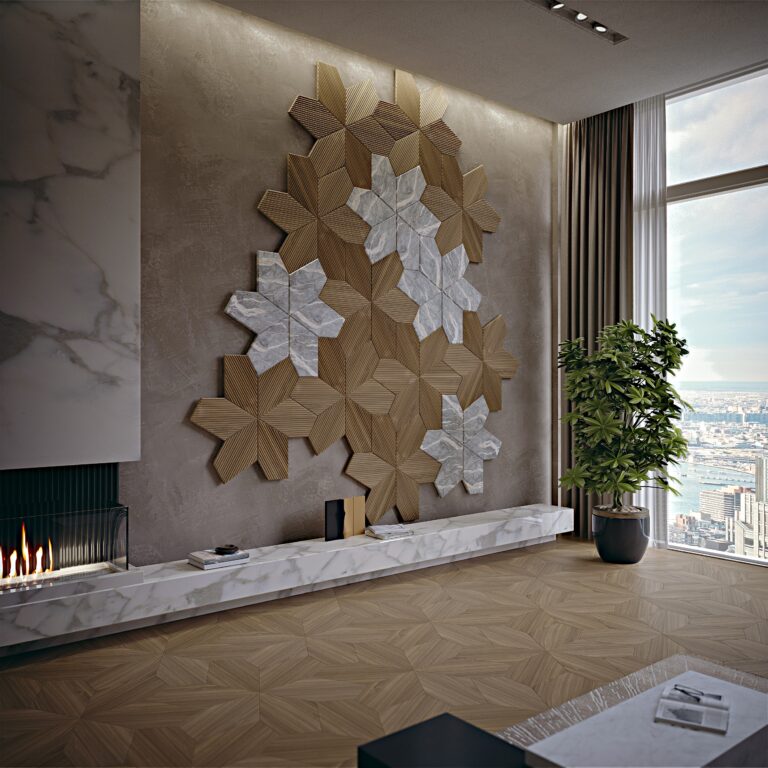 Dřevěné lamely na stěnu interiér příjemně zútulní, proč ale dřevěný obklad rovnou nepovýšit na obraz? Patentované panely italské značky Foglie d’Oro s výraznou 3D povrchovou strukturou umožňují na zdi vytvářet efektní obrazce. Můžete je využít pro obklad celé stěny nebo jen prostoru za televizí nebo čelem postele.